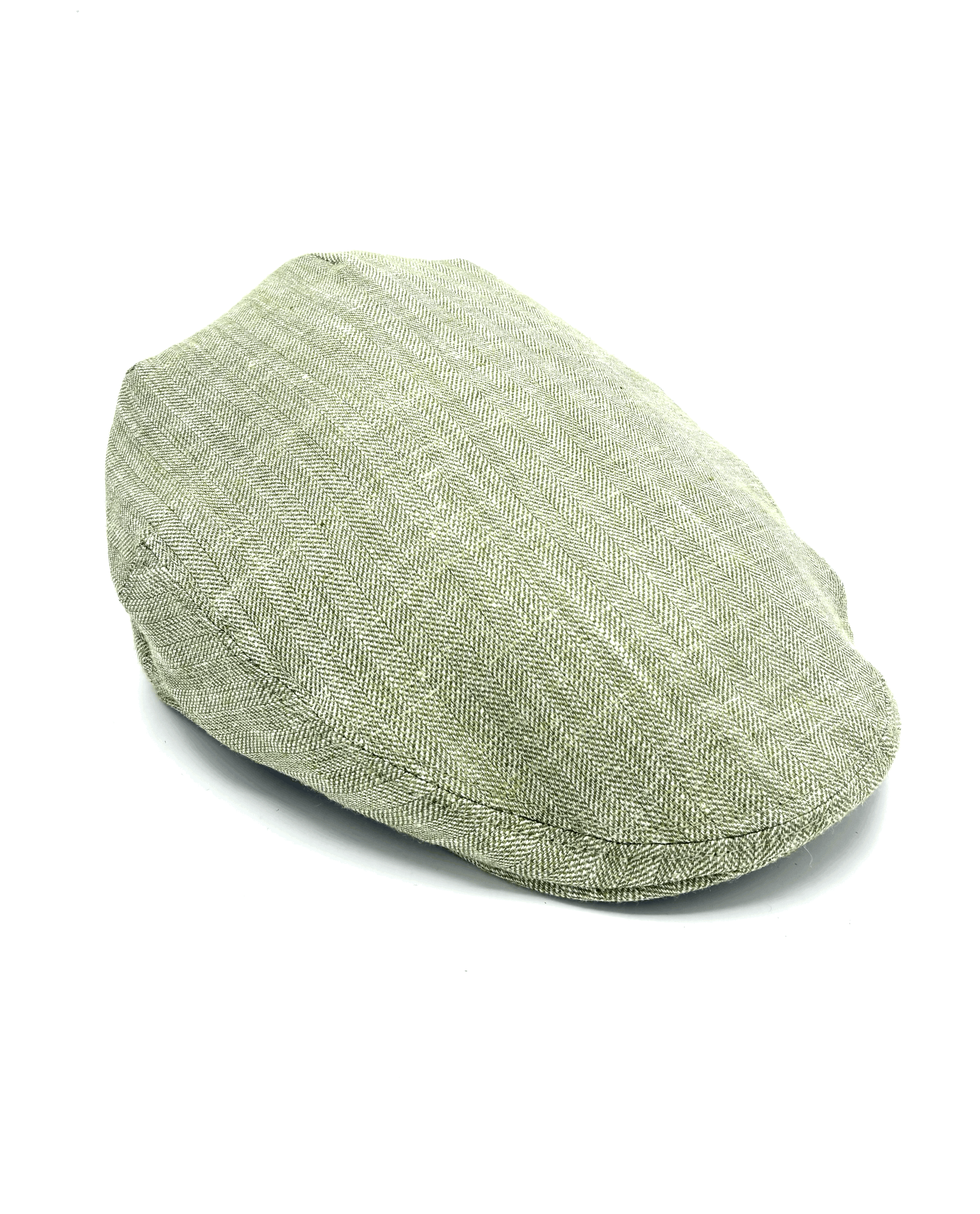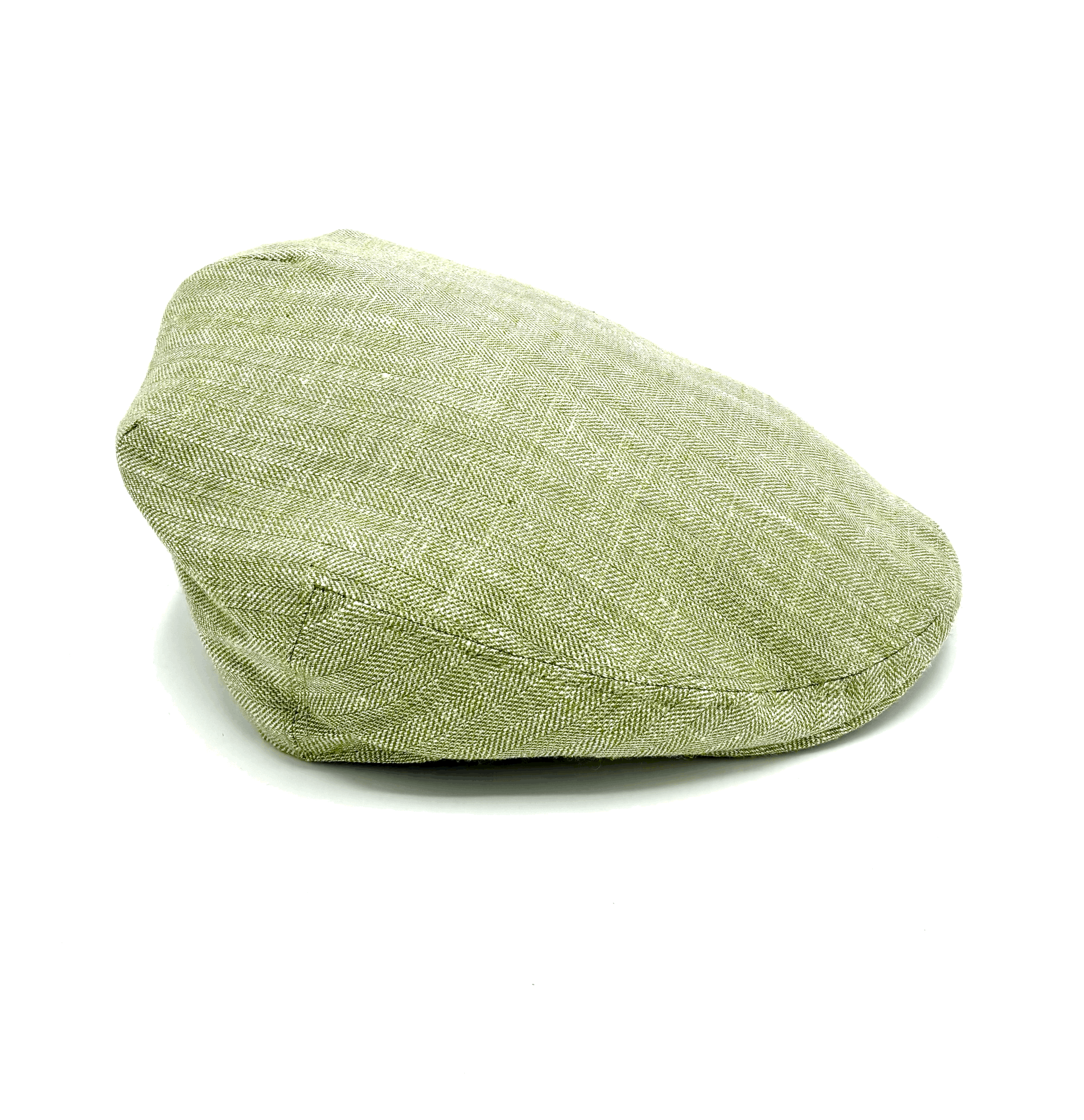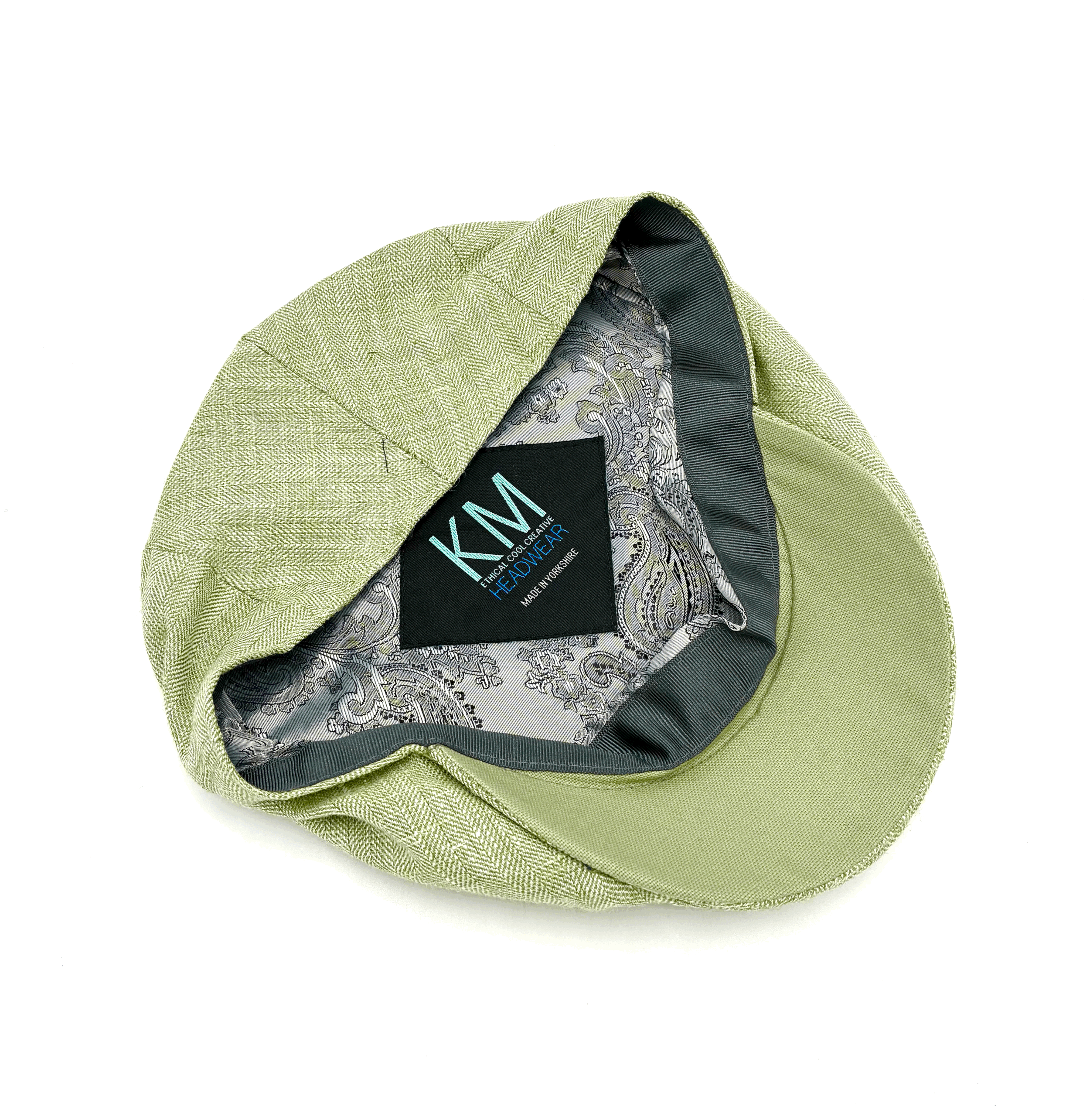 A stunning teal linen with a complimentary botanical print velvet under the peak.